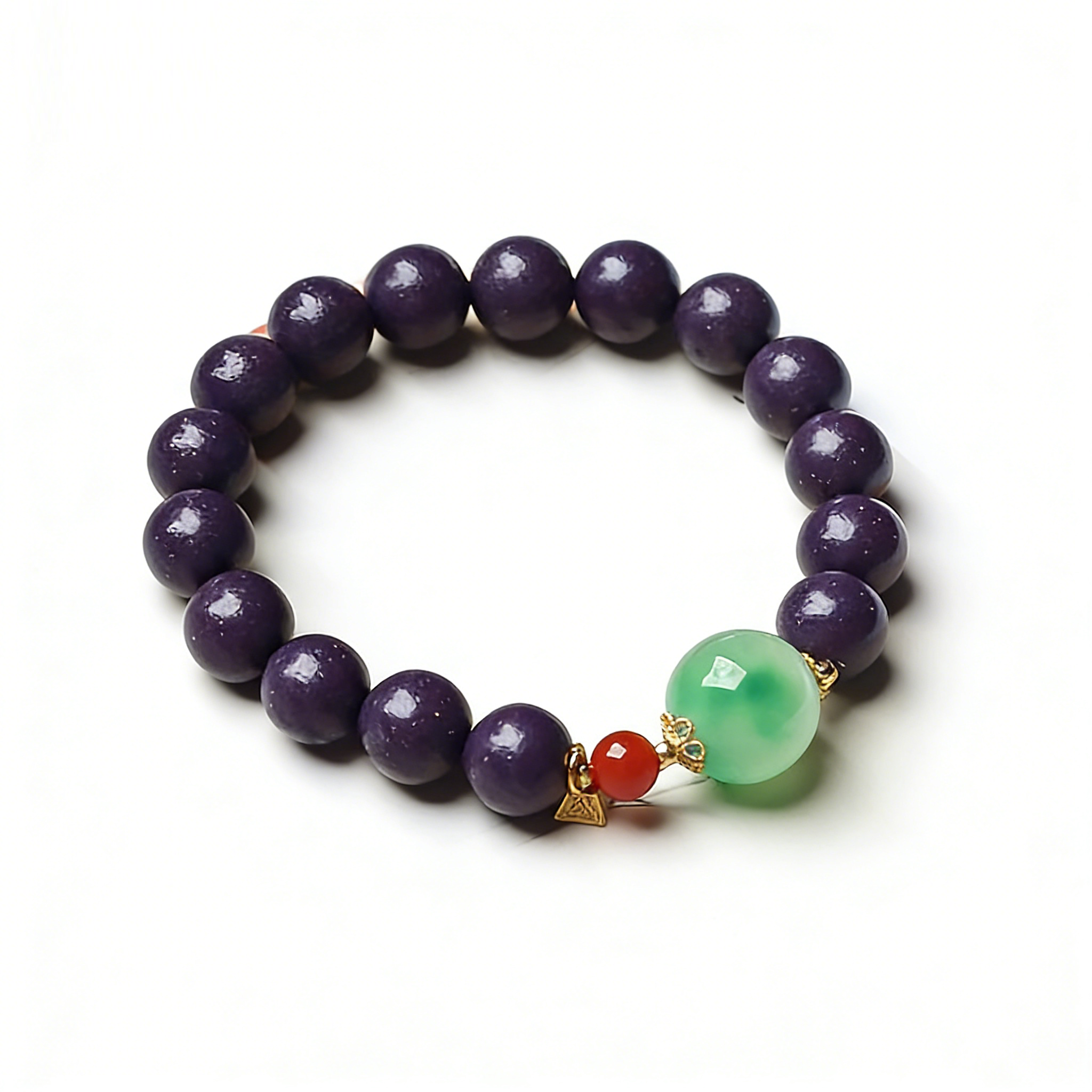 Lavender Purple Beaded Bracelet with Green Jade & Red Agate Accents